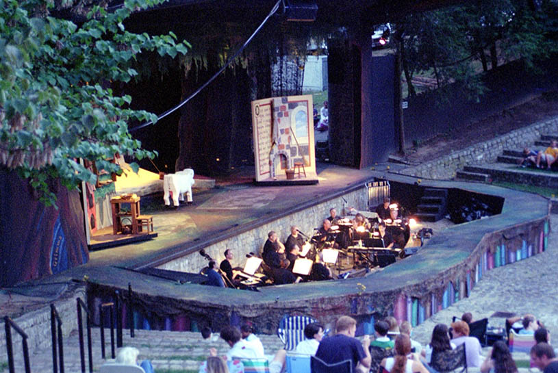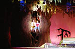 On this show, we were trying to create a world that was literally growing out of the stories. We began with units that were very childish, like pop-up books, moved into a warm fairy-tale place, akin to Maxfield Parrish paintings, then travelled through the second act to a place that felt increasingly desolate and haunting, with a feeling of Edward Gorey's style – creepy, lonely, but with a note of dry, dark humor as the characters leave the trappings of fantasy and face the grim realities of their world.