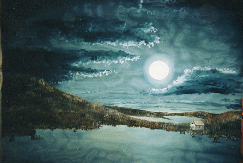 Drops were a very common scenic element for this touring children’s theatre company. Here are a couple of the puppet-show drops from one of our shows.