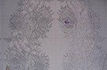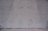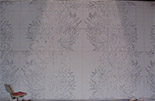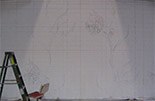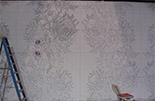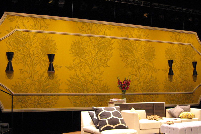 The main scenic element on this show was the oversized wallpaper pattern. With little other scenery to work on, I was able to devote most of the build to faithfully replicating the line drawing quality of the original image. Here, you can see the process of taking that from a 6" grid to a fully realized piece.