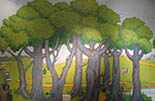 This large-scale mural project wraps the entire exhibit hall and the foyer beyond. Mimicking Stan and Jan’s distinctive illustration style was a joy, and gave me a great opportunity to revisit some childhood favorites.