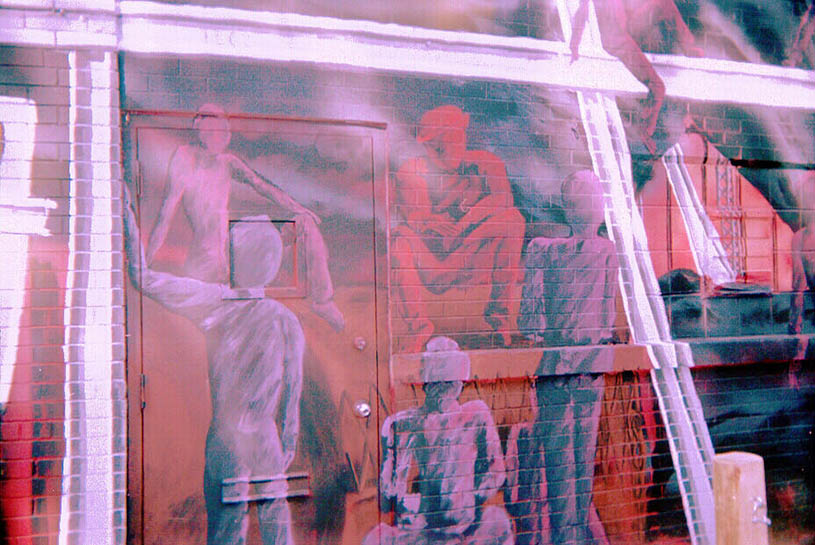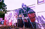 To help turn their nondescript looking warehouse space into an visually interesting arts space, Breadline Theatre brought me in to create a mural for the front of the building. The core ideas of the mural are the dehumanizing of people in a mechanical age combined with the transformative power of art.