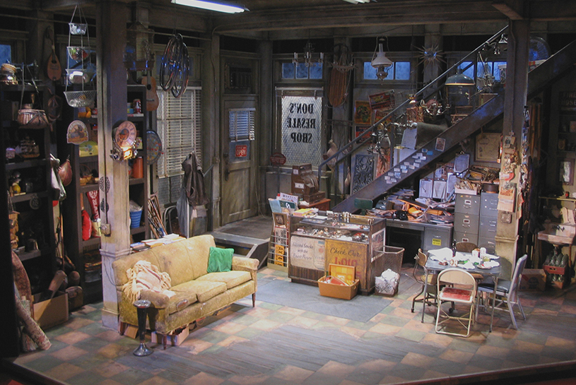 Texture was very important to this set. We used a stucco product to create the rough texture of much of the structure and used heat guns, glue, and latex to create bubbling and warping on a lot of the detail trim.