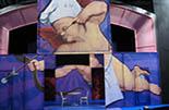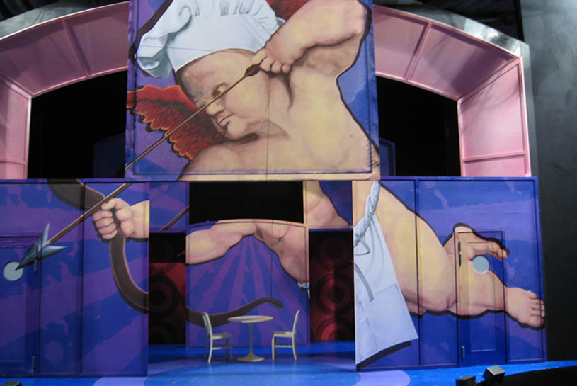 This giant, Renaissance-looking cherub was a massive paint project, especially since many parts of him, including his face were repeated on multiple pieces of scenery.