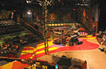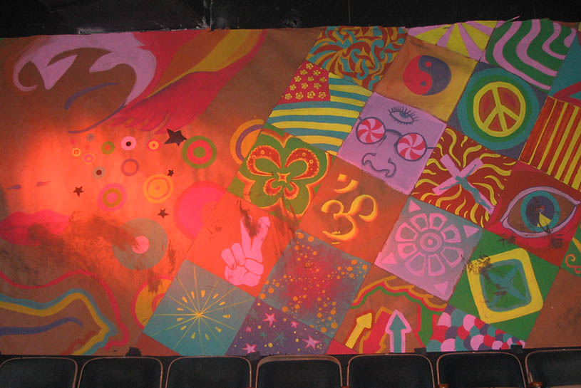 This set encompassed and redefined the entire theatre space. Armed with a pile of research on 60’s psychedelia, we set about to fill every surface in the theatre with it. I have rarely slept so little or had so much fun.