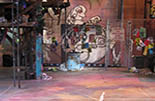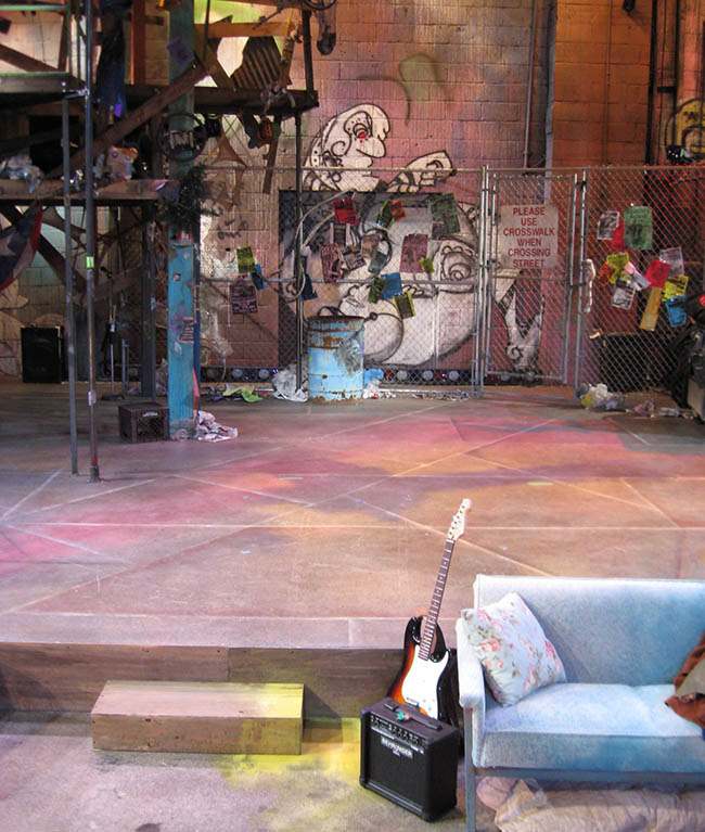 Jo Winiarski's striking street-art set encompassed the entire theatre building, which was possible because this was the final show before a massive renovation. I did a lot of research into how the various kinds of pieces were actually created and tried to replicate these as authentically as possible. We also got a very interesting late-night visit from the police while painting this one (no joke).
