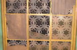 The ransacked synogogue of Two Jews posed a number of interesting challenges. To achieve the scarred look of the walls, we coated all surfaces in joint compound, painted them, and then came back through with claw hammers, rasps, chisels, and other implements of destruction to dig through that surface. The punched metal Star-of-David pattern over the windows was cut from stretch paper and spray-painted to mimic metal. For the plaques, I had to first learn to write accurately in Hebrew, then I used a hot point to carve the lettering into the Styrofoam plaques.