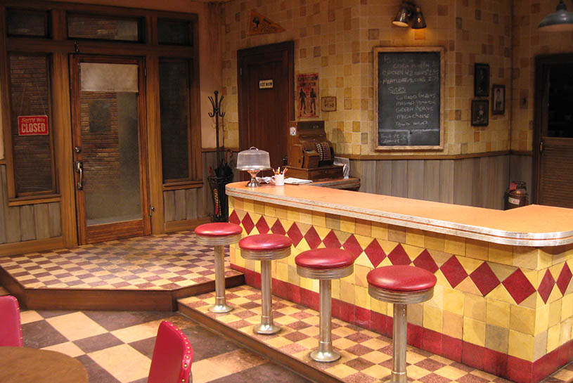 Getting the age and feel of the diner and the street beyond just right were a fun challenge on this show. It was important that it all felt a bit run-down without the restaurant losing a feeling of comfort.