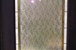 This show had a lot of interesting projects, but one of my favorites was the frosted window in the kitchen door. Using lace and tape as masks, the frost was done in spray paint, and the amber-stained panes were a mix of Colorine and Crystal Gel.